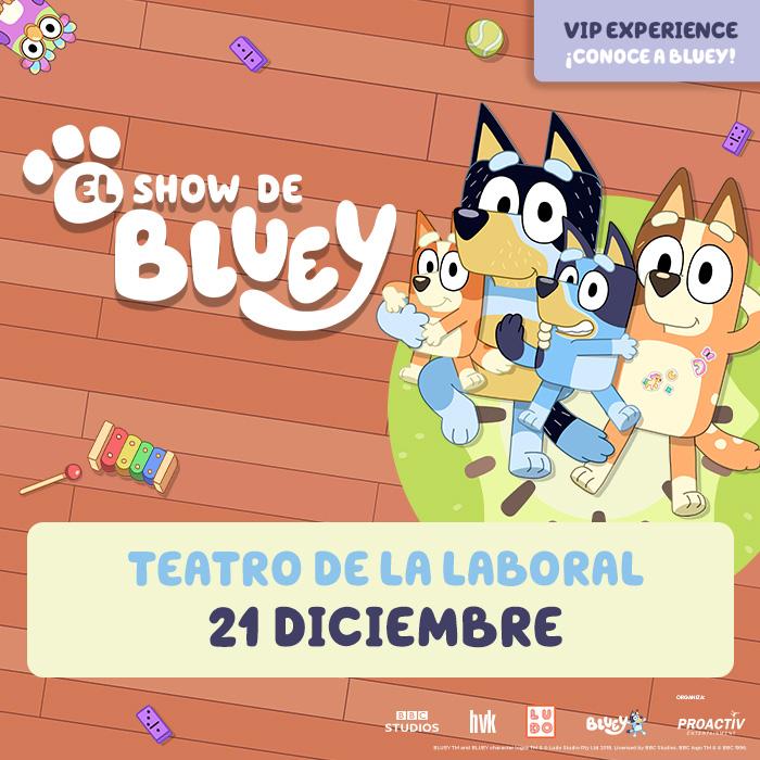 VIP Experience (entrada tipo Meet and Greet): 25€. Vive una experiencia inolvidable con acceso exclusivo al mundo de Bluey: conoce a Bluey en persona y hazte una foto con ella al finalizar el espectáculo; acreditación conmemorativa; regalo exclusivo; y atención personalizada por parte del staff. No da acceso a ver el show, imprescindible la compra de una entrada para ver el espectáculo. Todos deben comprar la entrada, incluidos adultos acompañantes. Comprar entradas online VIP Experience.