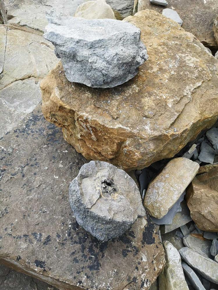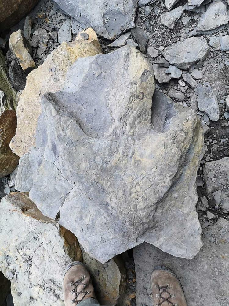 Además de la huella de dinosaurio terópodo, se han recuperado fragmentos de troncos con envueltas microbianas.