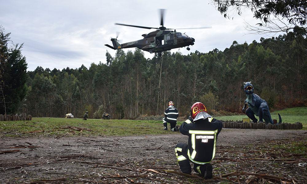 Back El MUJA recupera dos nuevos bloques con restos fósiles de un gran dinosaurio saurópodo con la ayuda del helicóptero de las Fuerzas Aeromóviles del Ejército de Tierra