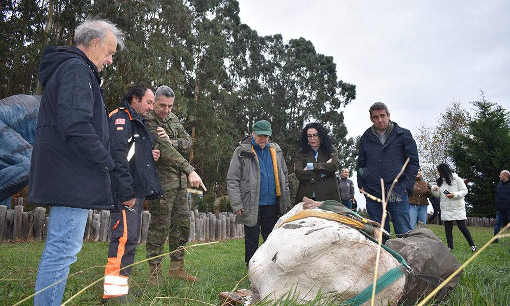 La Consejera de Cultura, Política Llingüística y Deporte, Vanessa Gutiérrez, ha presenciado la llegada por aire del material al MUJA, acompañada del Coronel Delegado de Defensa en el Principado de Asturias, Jesús Moreno del Valle; el Teniente Coronel, Secretario General de la Delegación de Defensa en el Principado de Asturias, Ismael Pérez Cobo; el Subteniente de la Secretaria General de la Delegación de Defensa en el Principado de Asturias, José Manuel Pérez Martínez; el Alcalde de Colunga, José Ángel Toyos, y el equipo científico del MUJA, formado por José Carlos García-Ramos, Laura Piñuela y Ángel García.