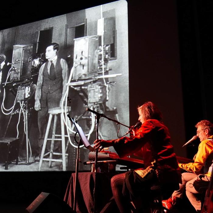 Con una guitarra de 12 cuerdas, un sintetizador vintage, un piano de juguete y su voz, este dúo marsellés Catherine Vincent -compuesto por Catherine Estrade y Vincent Commaret-, crea un acompañamiento sonoro que da un toque de comedia musical a la proyección. En su día a día, componen música para niños y adultos y también crean composiciones para acompañar películas o espectáculos de cine y música, como Viaje al país de las hadas.