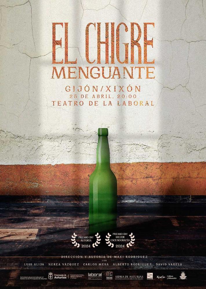Así comienza el planteamiento de El chigre menguante a partir de cinco intérpretes que nos ayudan a vivir y empatizar con la vida y el sentir asturiano. Desde la democracia hasta la actualidad reflexionamos con la forma de ser de la asturiana y el asturiano, de las familias, del foriatu, del gallu, del babayu, del grandón, del repunante… Se reflejan, desde la elegancia de los personajes planteados por Maxi Rodríguez, los tiempos de gloria y de crisis del Principado de Asturias, pero siempre desde la opinión de ese humilde local al que llamamos "chigre" en Asturias.